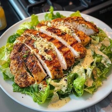 Healthy size crisp romaine hearts tossed in our signature creamy Caesar dressing, topped with a massive, perfectly seared chicken breast, shaved Parmesan, and cracked black pepper.