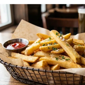 Seasoned fried with a classic ketchup.