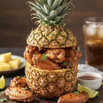 Served with a wow-factor. A dozen of our signature wings served inside a fresh, hollowed-out pineapple. Garnished with cilantro and chili flakes. You can choose from buffalo, bbq, plain, or hot honey sauce.