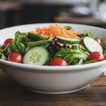 A refreshing blend of crisp romaine and spring greens, topped with cherry tomatoes, shredded cheese, and sliced cucumbers.